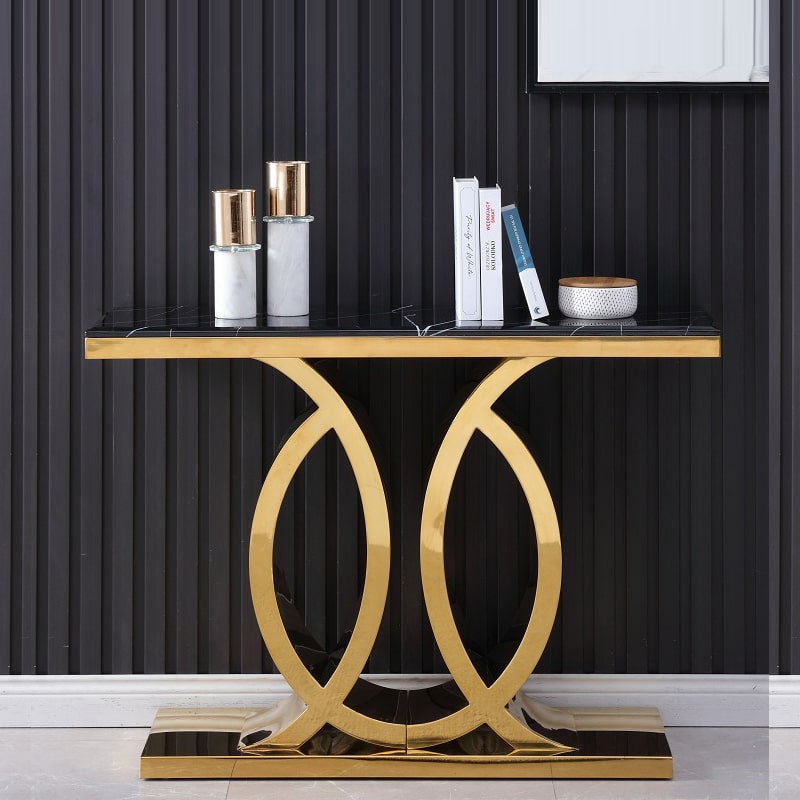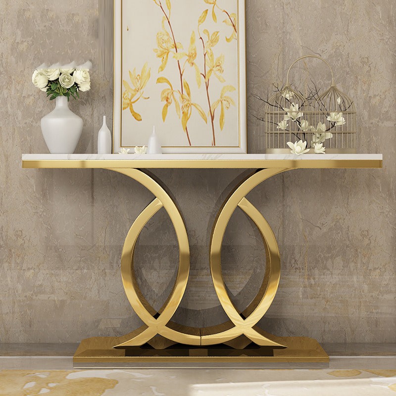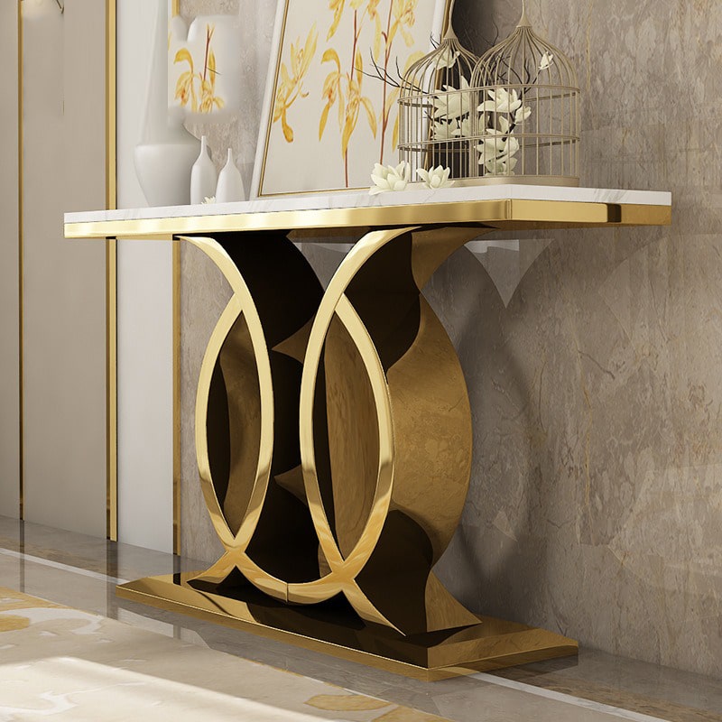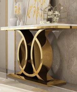 Trong phong thủy, mỗi món đồ nội thất đều có ảnh hưởng đến năng lượng của không gian sống. Bàn console cao cấp như bàn console bày phòng khách từ Decor Hà Nội không chỉ có tác dụng trang trí mà còn giúp cân bằng các yếu tố âm dương trong nhà. Mặt bàn làm từ đá tự nhiên, kết hợp với hợp kim mạ vàng PVD, giúp gia chủ thu hút tài lộc và phát triển công danh. Đây là sự kết hợp lý tưởng giữa thẩm mỹ và năng lượng phong thủy, mang lại sự ổn định và thịnh vượng cho gia đình.