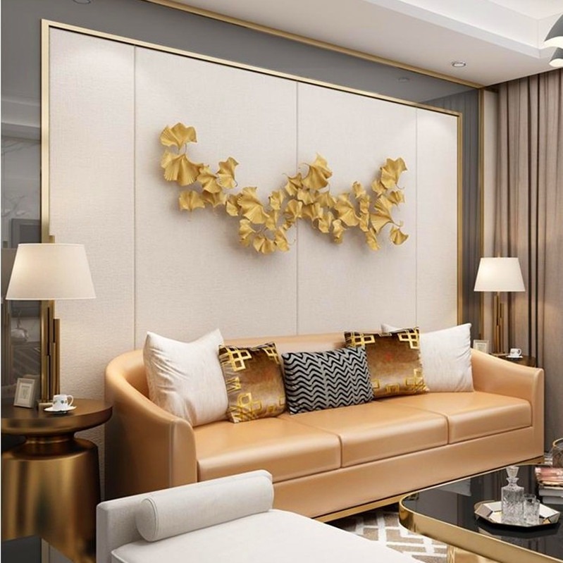 Phù điêu nghệ thuật hình lá bạch quả trang trí tường trang trí mảng tường sau ghế sofa nổi bật