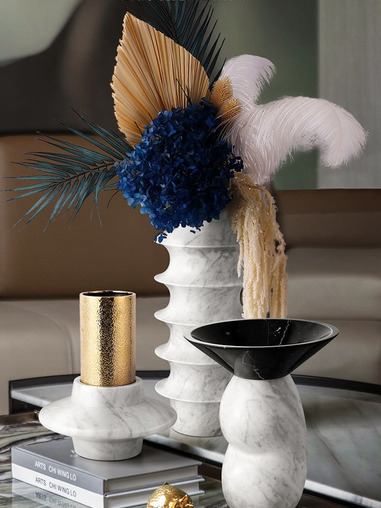 Bình hoa bằng đá cẩm thạch không chỉ mang lại vẻ đẹp thẩm mỹ mà còn có giá trị phong thuỷ. Trong phong thuỷ, đá cẩm thạch được coi là biểu tượng của sự may mắn và tài lộc. Việc sử dụng các món đồ decor nhà cửa như bình hoa này không chỉ giúp không gian trở nên đẹp mắt mà còn thu hút năng lượng tích cực và tạo ra một môi trường sống hài hòa, giúp gia chủ đón nhận may mắn và thành công.