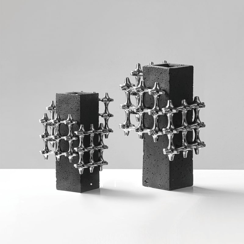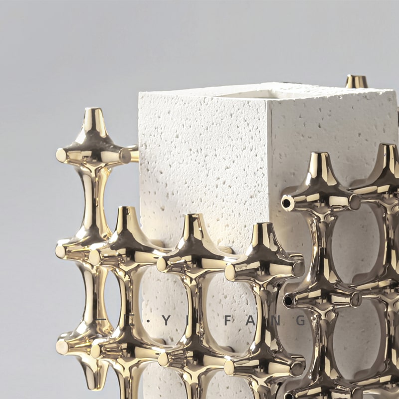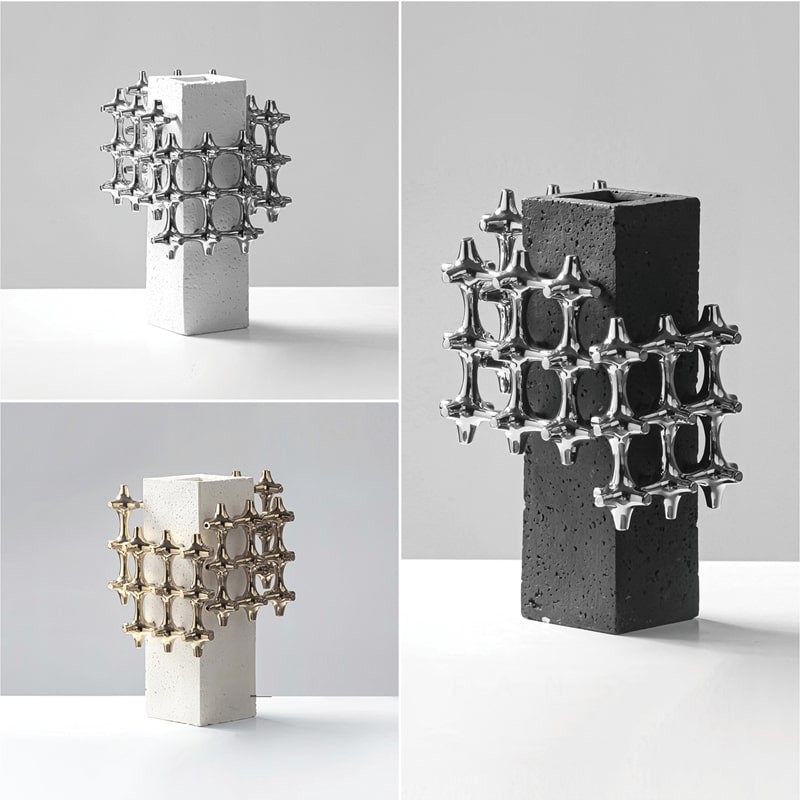 Bình Hoa Khối Cấu Trúc Kim Loại