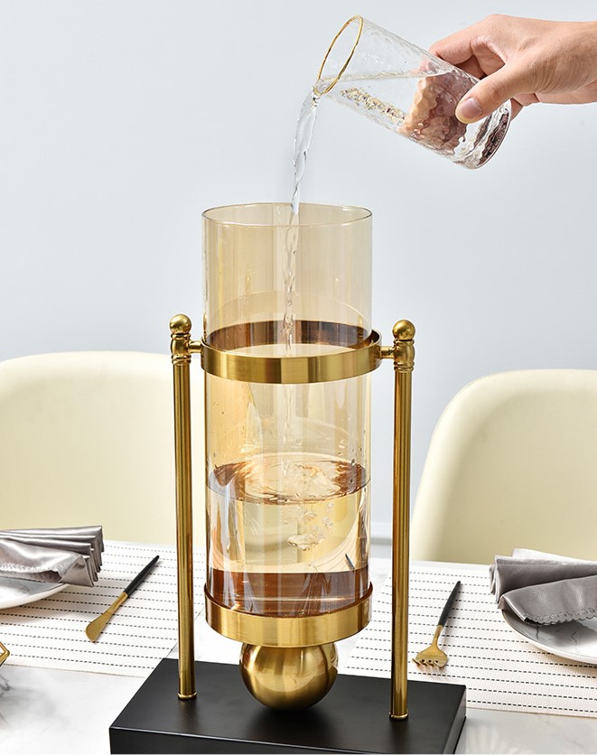Chất liệu thủy tinh mang đến sự trong suốt và sang trọng, trong khi kim loại mạ tạo điểm nhấn nổi bật, làm cho bình hoa không chỉ có giá trị thẩm mỹ cao mà còn giúp không gian trở nên tinh tế hơn. Đặc biệt, sản phẩm này rất dễ kết hợp với các loại hoa tươi hoặc hoa khô, tạo nên một không gian sống đầy sinh động và phong cách.