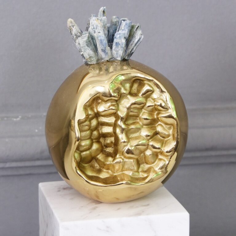 Chất liệu của bộ ba quả lựa này là đồng kết hợp với đá thạch anh tự nhiên, tạo nên sự hòa hợp giữa vẻ đẹp bền bỉ của đồng và sự tươi mới, rực rỡ của đá thạch anh. Đá thạch anh không chỉ mang lại vẻ đẹp sáng bóng mà còn được biết đến với công dụng phong thủy tuyệt vời, giúp trừ tà, hút tài lộc và tạo không gian sống an lành.