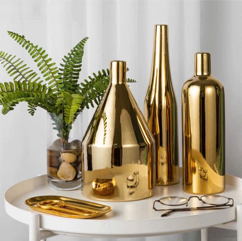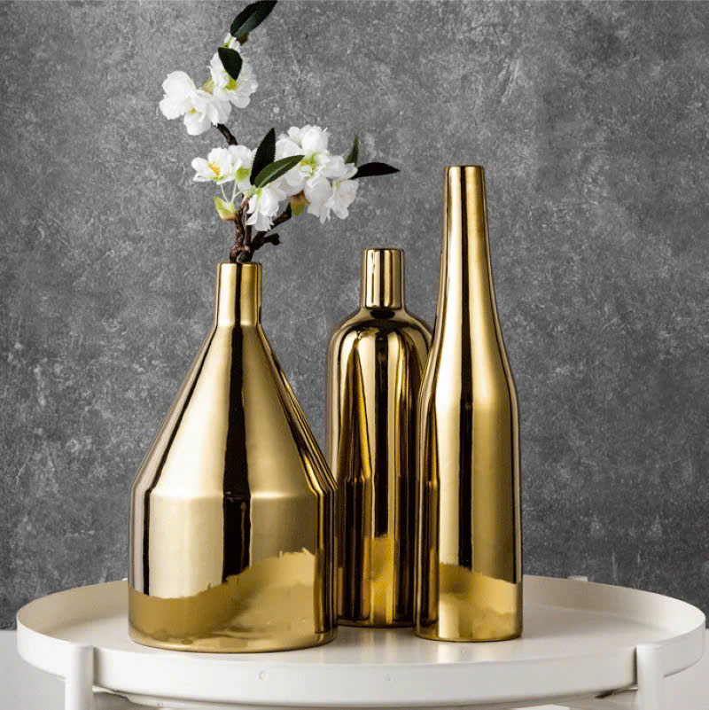 Bộ Lọ Hoa Gốm Mạ Vàng