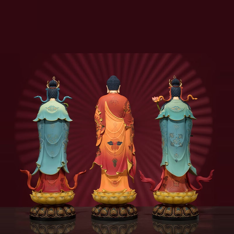 Bộ Tượng Tây Tam Thánh Đứng Trên Đài Sen