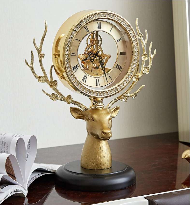 Đồng Hồ Để Bàn Cao Cấp Hình Con Hươu – Trang Trí Tủ Rượu Và Phòng Khách Sang Trọng Từ Decor Hà Nội