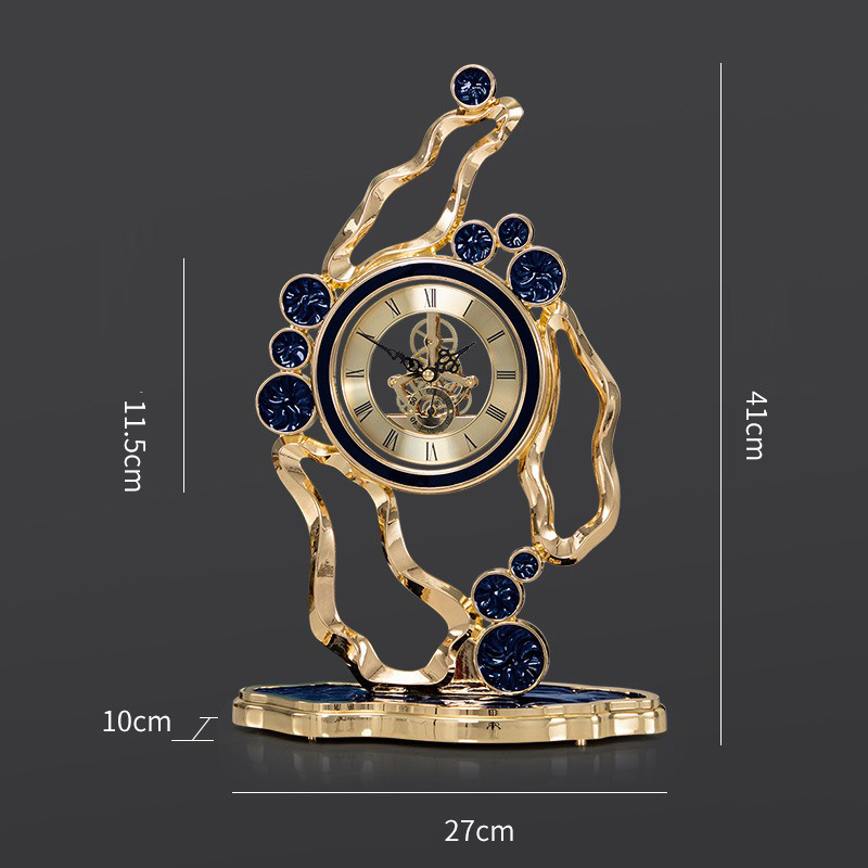 - Kích thước lý tưởng: Với kích thước D27cm x R10cm x 41cm, chiếc đồng hồ này có thể dễ dàng đặt trên bàn làm việc, kệ tivi hoặc bàn trà mà không chiếm quá nhiều diện tích. Kích thước này vừa đủ để tạo điểm nhấn trong không gian mà không làm cho không gian trở nên chật chội.