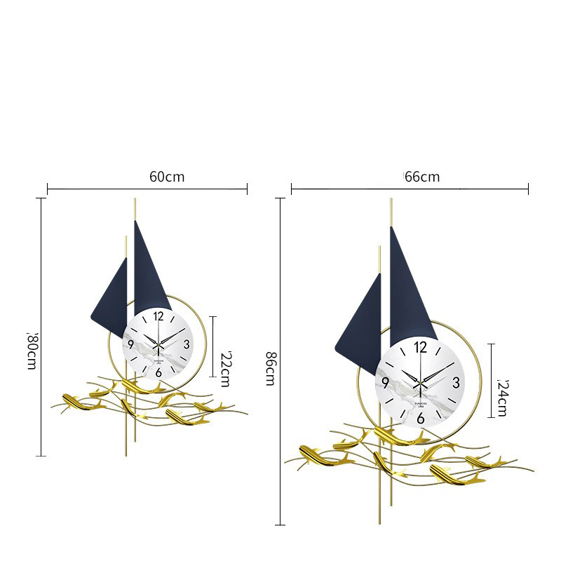 Mẫu đồng hồ treo tường trang trí phòng khách này có thiết kế đơn giản nhưng đầy ấn tượng. Chi tiết kim loại với đường nét sắc sảo, kết hợp với thuyền buồm tạo ra một sự cân đối hoàn hảo cho toàn bộ chiếc đồng hồ. Đây là một sản phẩm trang trí lý tưởng cho những ai yêu thích sự mới mẻ và độc đáo trong không gian sống của mình.