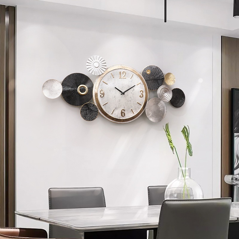Chất liệu là yếu tố quan trọng tạo nên sự bền vững và vẻ đẹp cho sản phẩm. Mẫu đồng hồ treo tường trang trí phòng khách này được làm từ hợp kim cao cấp, giúp đồng hồ có độ bền tuyệt vời và khả năng chống lại sự mài mòn theo thời gian. Chất liệu hợp kim không chỉ mang lại độ cứng cáp mà còn tạo ra một vẻ đẹp sáng bóng, sang trọng cho sản phẩm. Nhờ vào chất liệu này, chiếc đồng hồ luôn giữ được vẻ đẹp như mới, không bị ảnh hưởng bởi tác động của môi trường.