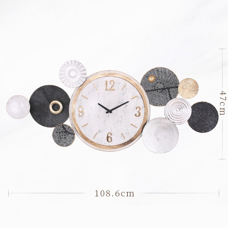 Với kích thước D109cm x C47cm, mẫu đồng hồ treo tường trang trí này rất phù hợp cho những không gian rộng như phòng khách, phòng ăn, hoặc phòng làm việc. Kích thước của đồng hồ đủ lớn để trở thành điểm nhấn ấn tượng trong căn phòng nhưng lại không chiếm quá nhiều diện tích. Đặc biệt, chiếc đồng hồ có trọng lượng 3kg, đủ vững chắc để treo trên tường mà không lo bị xê dịch hay rơi. Với kích thước này, bạn có thể dễ dàng treo đồng hồ ở những vị trí trung tâm của căn phòng, tạo nên sự cân đối và hài hòa cho không gian.