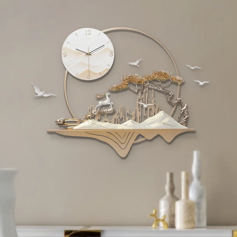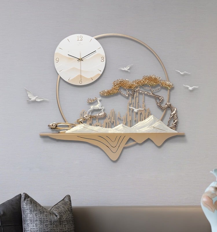 Được làm từ kim loại cao cấp và thiết kế với hình ảnh hươu nai trong cảnh thiên nhiên, chiếc đồng hồ treo tường trang trí phòng khách này không chỉ là một chiếc đồng hồ thông thường mà còn là một tác phẩm nghệ thuật. Với kích thước D88cm x H76cm, đồng hồ này sẽ là điểm nhấn nổi bật trong không gian phòng khách, tạo nên sự hài hòa và sang trọng.