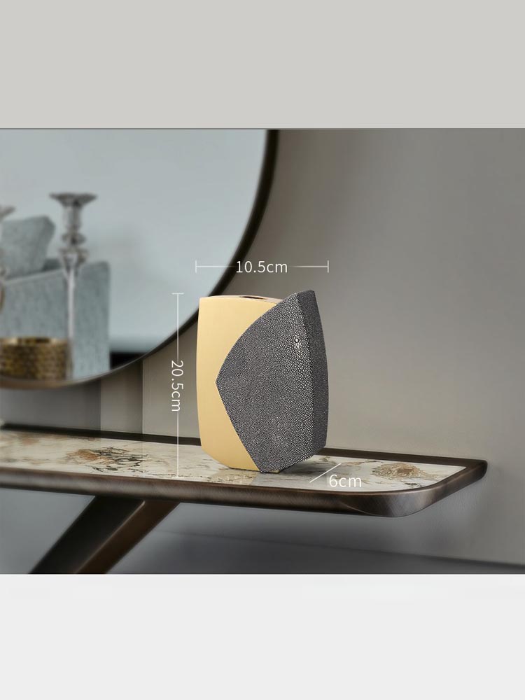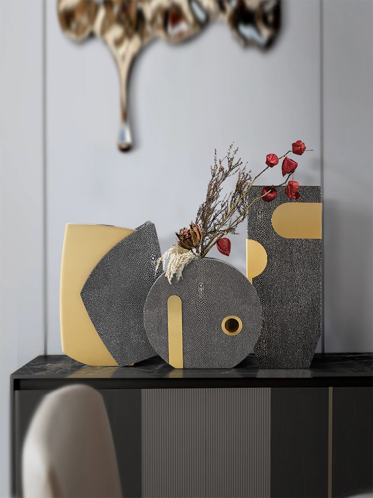 Trang trí nội thất là một phần không thể thiếu trong việc tạo dựng không gian sống đẹp và thể hiện cá tính của gia chủ. Mỗi món đồ trang trí đều mang lại sự sống động và hài hòa cho không gian, tạo nên một bức tranh tổng thể hoàn hảo. Lọ hoa trang trí sang trọng từ Decor Hà Nội là một trong những món đồ decor nhà cửa độc đáo, mang lại vẻ đẹp tinh tế và sang trọng cho ngôi nhà của bạn. Với chất liệu kim loại và da, sản phẩm này sẽ là điểm nhấn tuyệt vời cho mọi không gian sống.