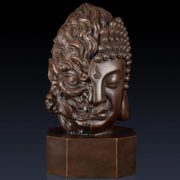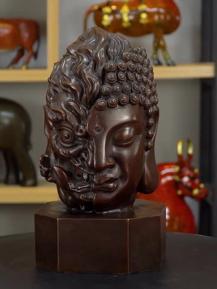 Tượng Đầu Phật Thiện Ác Bằng Đồng – Nghệ Thuật Phong Thủy Tinh Tế Tại Decor Hà Nội