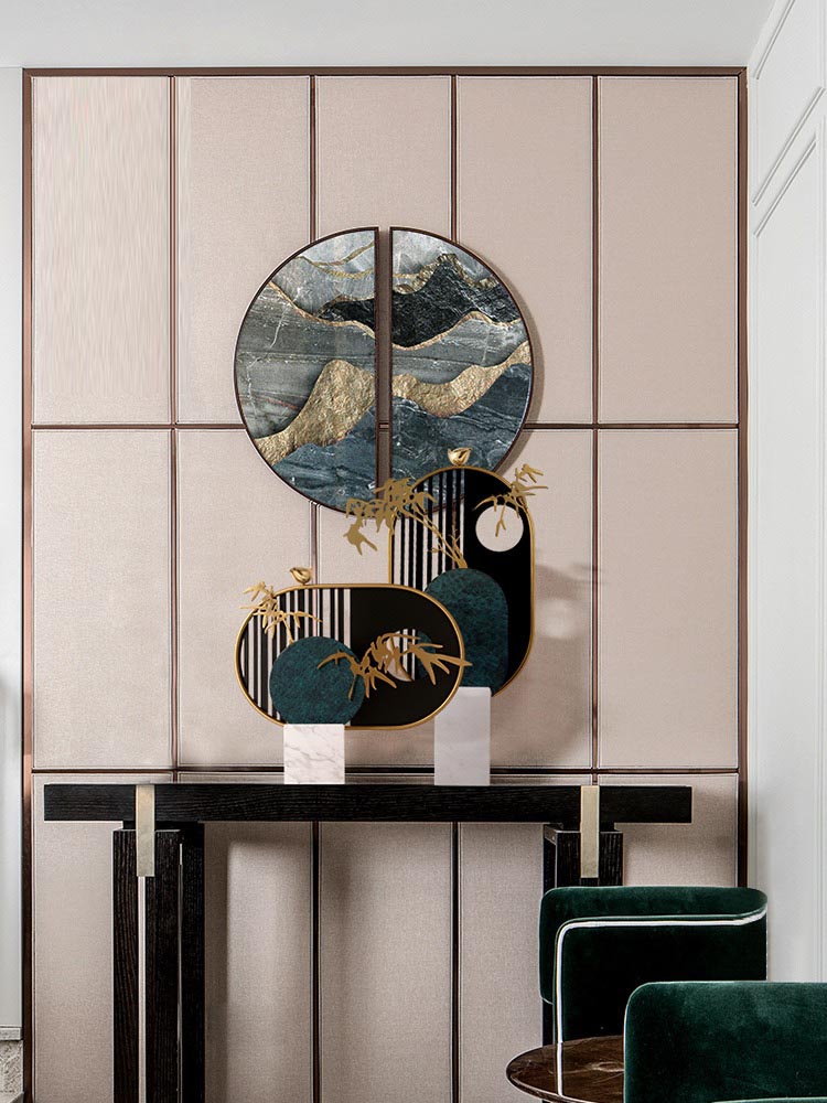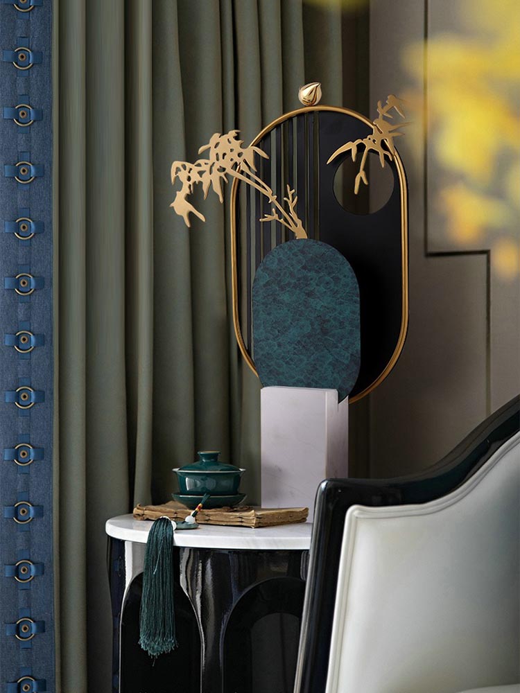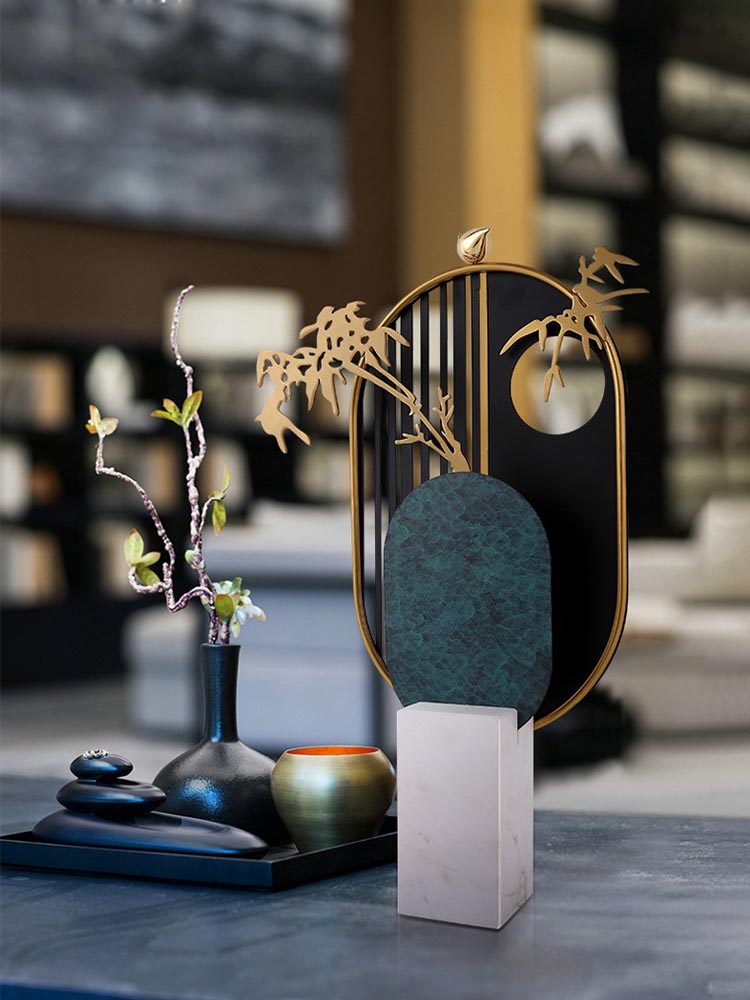 Sự kết hợp giữa chất liệu đồng thau sáng bóng và đá cẩm thạch tạo nên một sản phẩm vừa hiện đại, vừa cổ điển, rất phù hợp cho những không gian yêu thích sự sang trọng, thanh lịch mà không kém phần tinh tế. Phong cách Trung Hoa hiện đại cũng mang đến một không gian đầy sự hòa hợp, sự cân bằng và mang lại nguồn năng lượng tích cực cho gia đình.