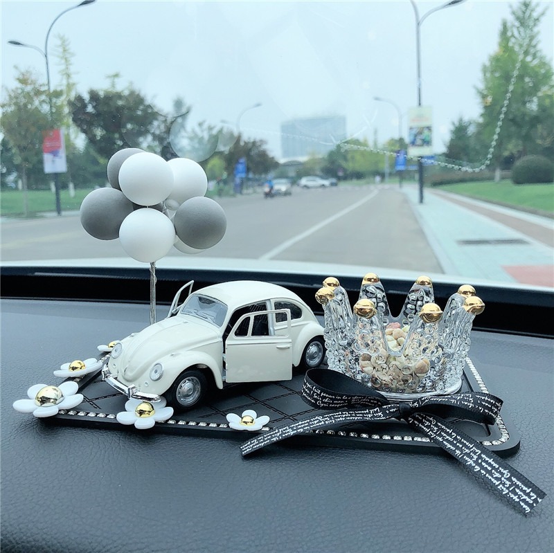 Sản phẩm có kích thước vừa phải với đệm D19.5cm, ô tô D10cm, bóng C10cm, và vương miện D8cm, giúp bạn dễ dàng đặt lên taplo ô tô đẹp mà không chiếm quá nhiều không gian. Dù có kích thước nhỏ gọn nhưng sản phẩm vẫn tạo được điểm nhấn nổi bật trong không gian xe, giúp không gian xe của bạn trở nên sang trọng và lôi cuốn.