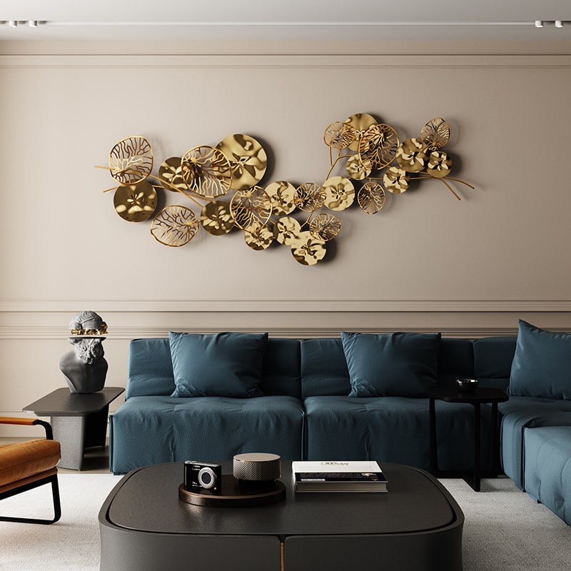 Phù Điêu 3D Lá Sen Vàng Nghệ Thuật