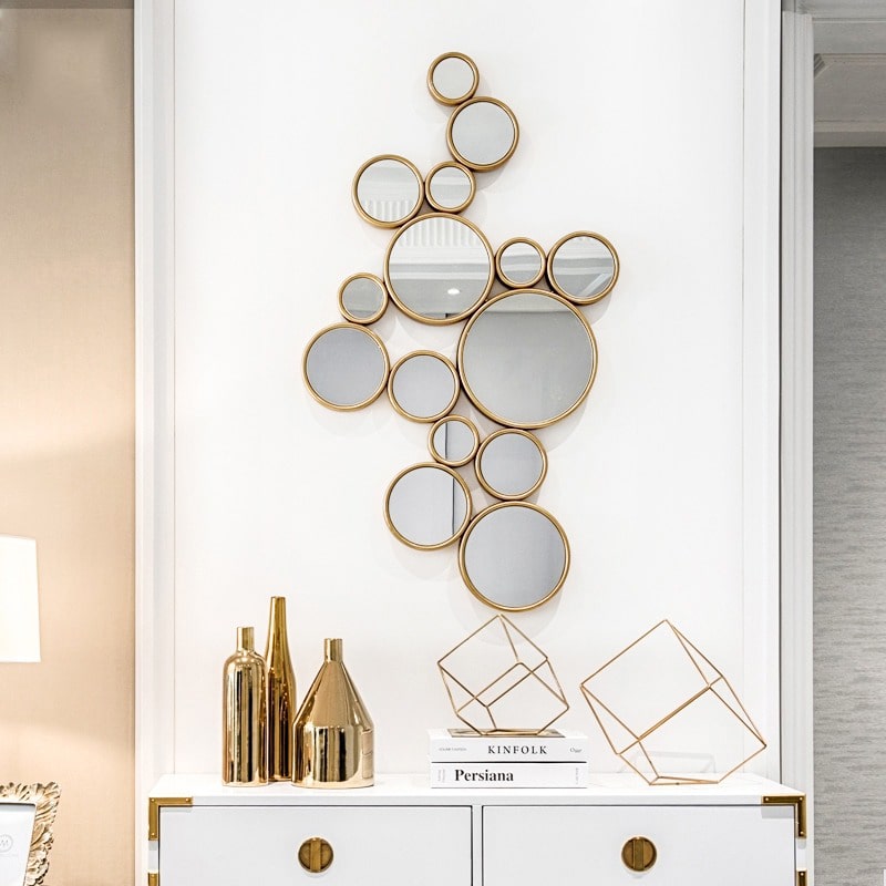 Phù điêu gương treo tường với nhiều hình tròn độc đáo