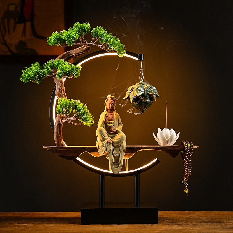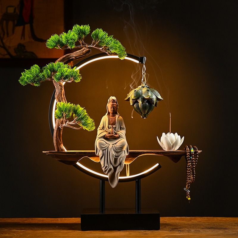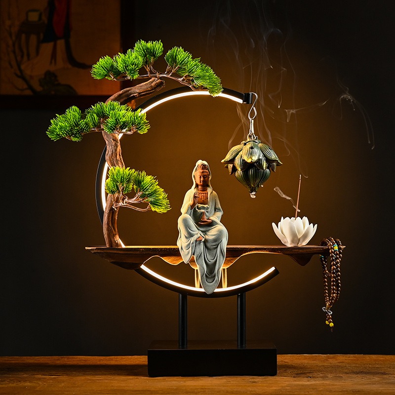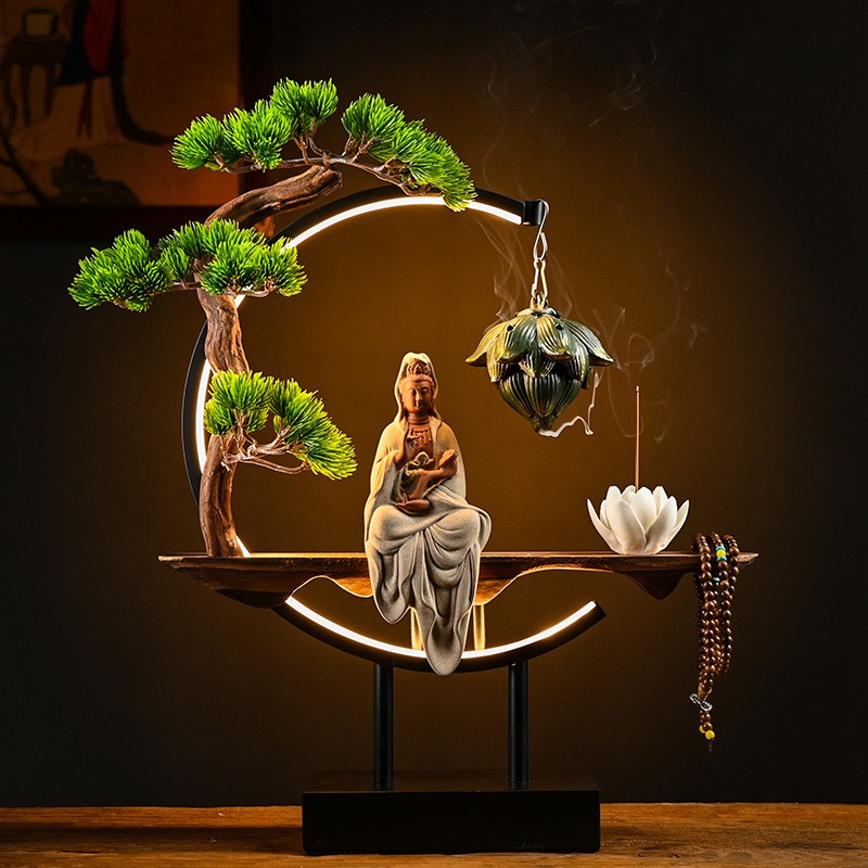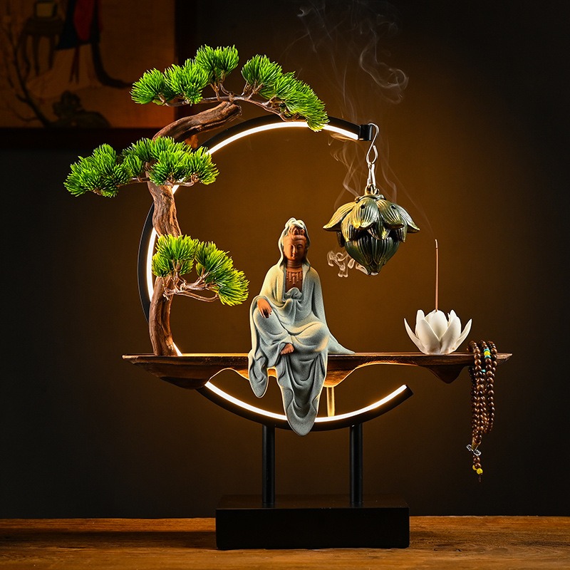 Cách Bài Trí Thác Khói Trầm Hương Tượng Quan Âm Phong Thủy Trong Không Gian