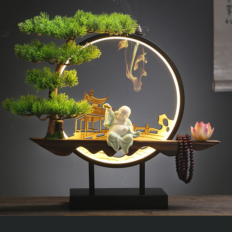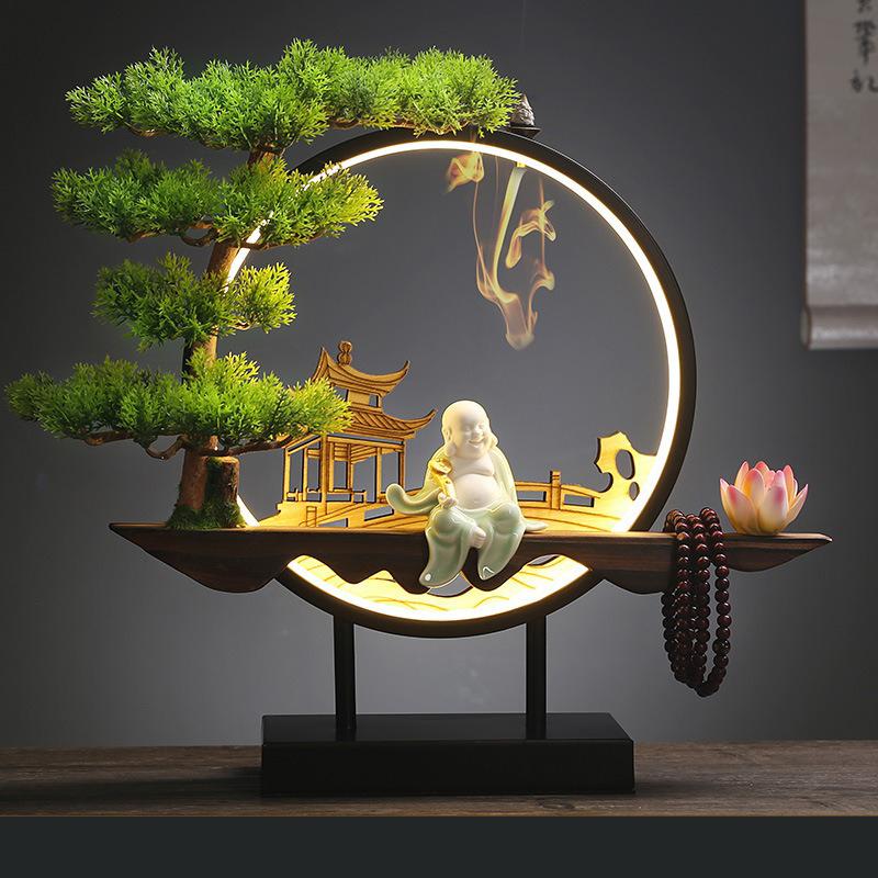 Với hình ảnh Phật Di Lặc và thác khói trầm hương phong thủy, sản phẩm này giúp gia chủ thu hút tài lộc, may mắn và thịnh vượng. Khói trầm giúp tạo không gian trong lành, thu hút năng lượng tích cực, từ đó mang lại sự may mắn và tài lộc cho gia đình.