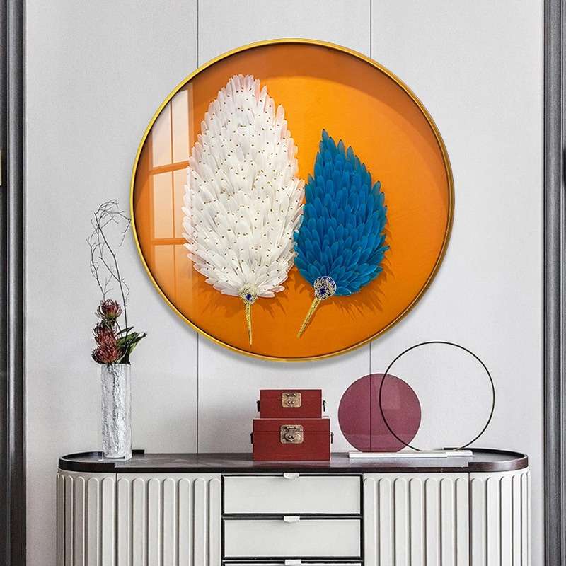 Tranh tròn 3D lông vũ độc đáo trang trí phòng khách hiện đại