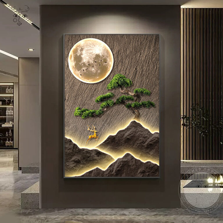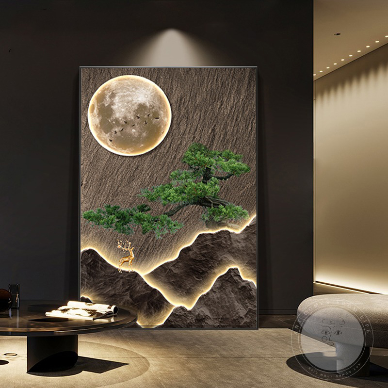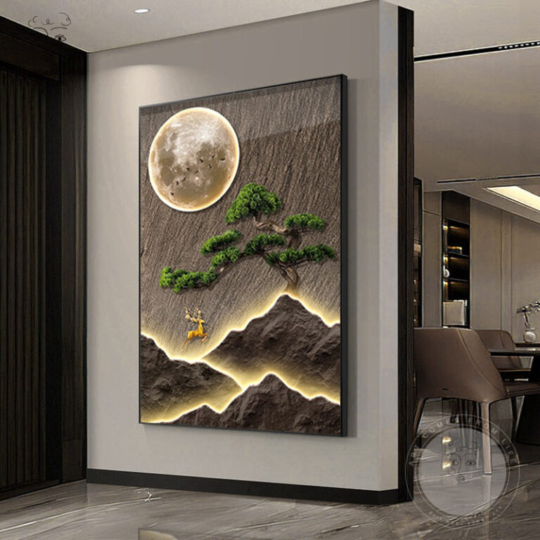 Chọn tranh treo tường nghệ thuật với hình ảnh núi và mặt trăng không chỉ giúp trang trí không gian mà còn mang lại may mắn và sự an lành cho gia đình. Đây là lý do tại sao bức tranh này được nhiều người ưa chuộng, không chỉ bởi vẻ đẹp thẩm mỹ mà còn vì giá trị phong thủy mà nó mang lại.