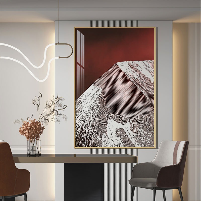 Tranh in sơn dầu phong cảnh núi là hình ảnh khá phổ biến được lựa chọn nhiều trong không gian nội thất