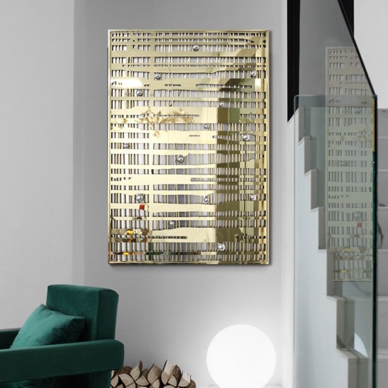 Chất liệu này cũng rất dễ bảo quản, không cần phải lo lắng về việc tranh sẽ bị hư hỏng do ẩm ướt hay tác động môi trường. Với lớp hoàn thiện vàng titan, bức tranh tạo ra ánh sáng lung linh và phản chiếu ánh sáng tự nhiên, khiến không gian trở nên sống động và đầy cuốn hút.