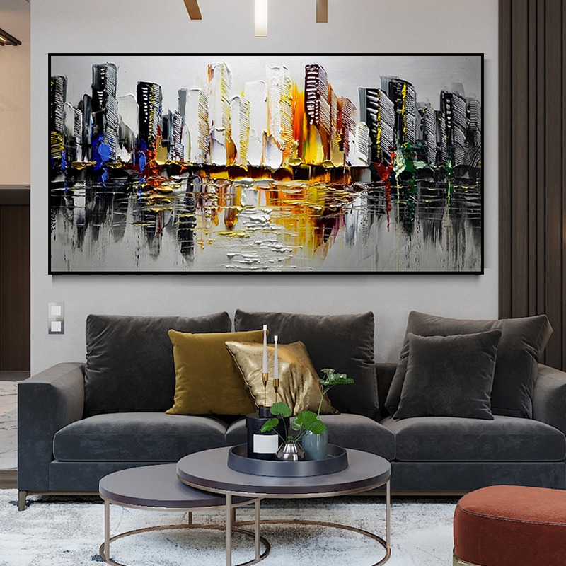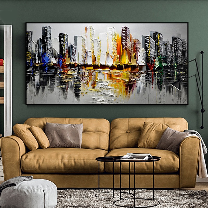 Tranh Sơn Dầu Thành Phố Hiện Đại Trang Trí Phòng Khách
