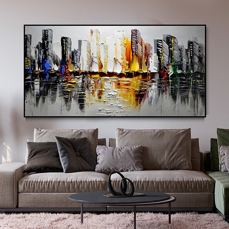 Tranh Sơn Dầu Thành Phố Hiện Đại Trang Trí Phòng Khách – Điểm Nhấn Sang Trọng Từ Decor Hà Nội