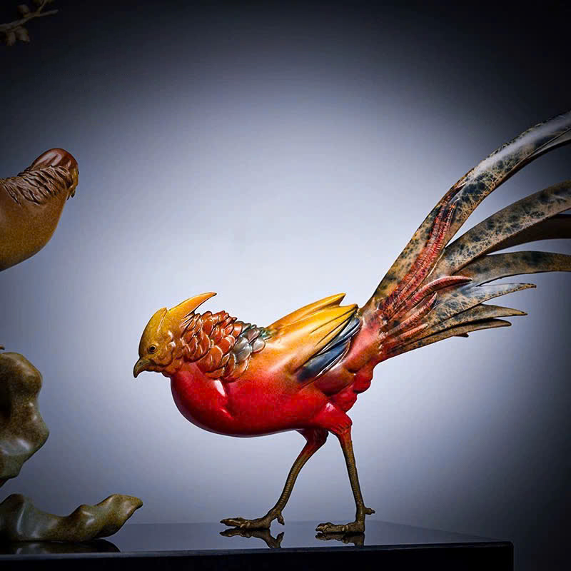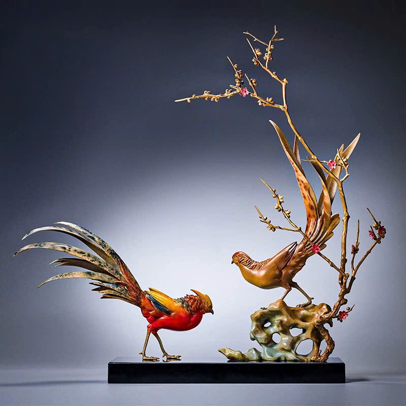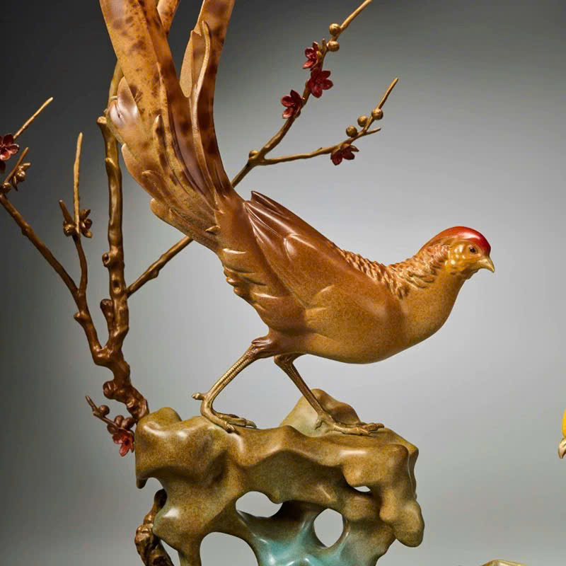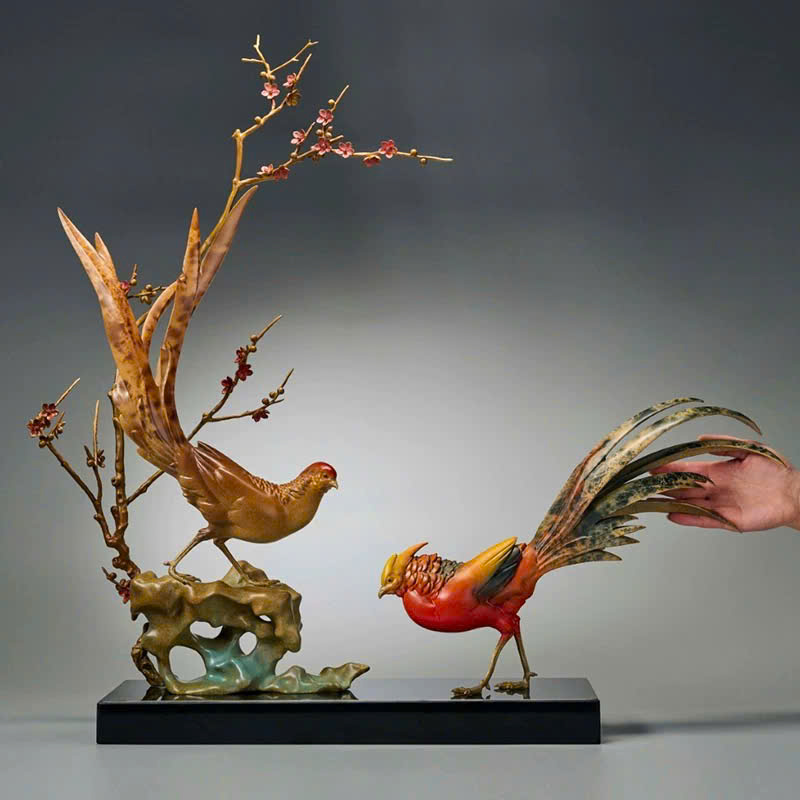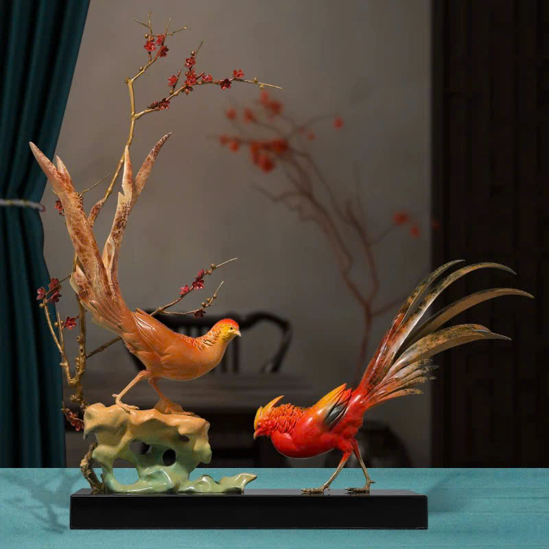 Tượng Chim Trĩ Song Phúc Bên Cành Mai