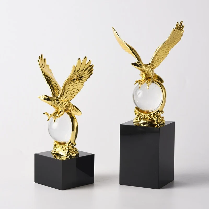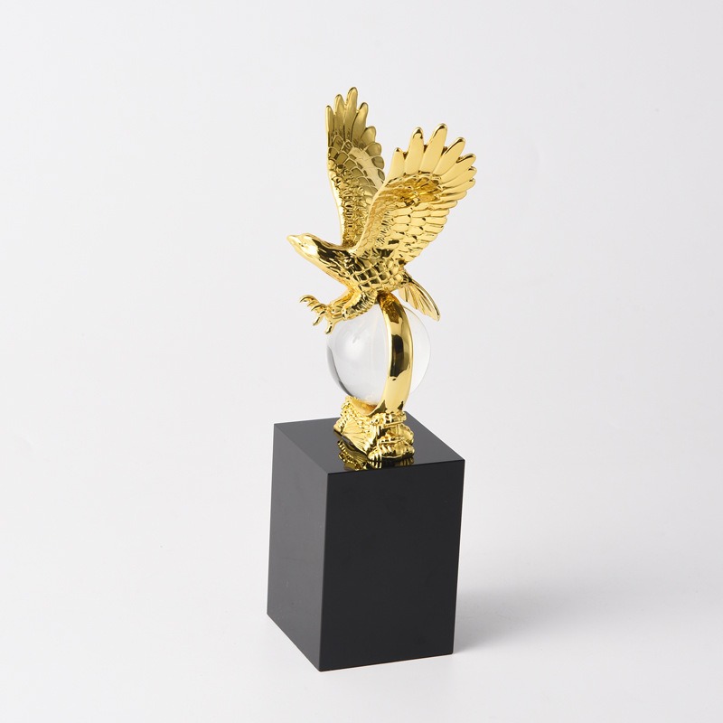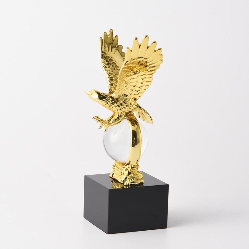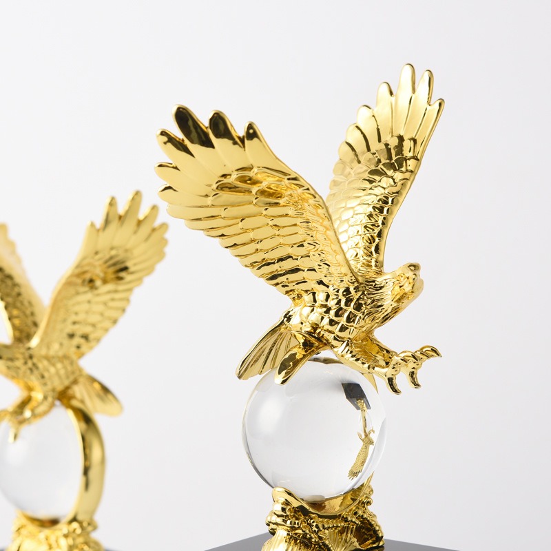 Tượng đại bàng cắp quả cầu pha lê được làm bằng hợp kim mạ bắt sáng đẹp mắt