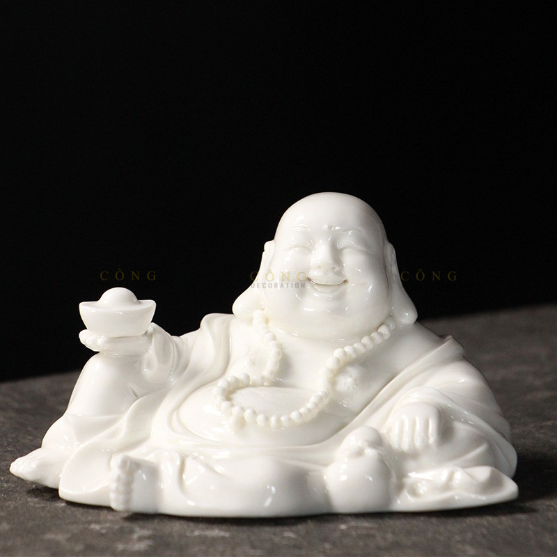 Tượng Di Lặc để xe hơi chất liệu gốm sứ