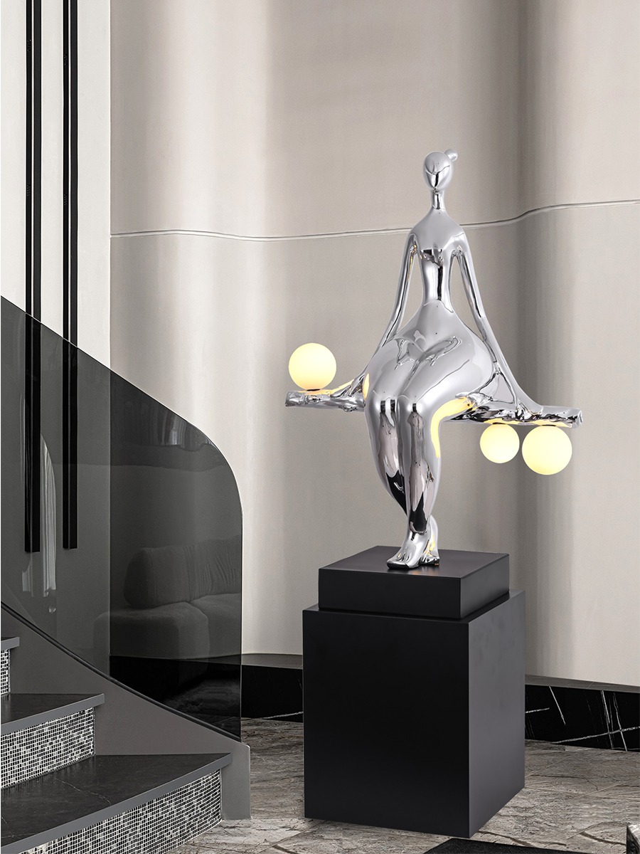 Tượng điêu khắc nghệ thuật kết hợp đèn trang trí màu bạc mạ điện
