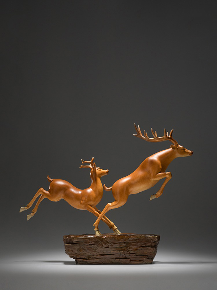 Tượng đôi hươu chạy bằng đồng