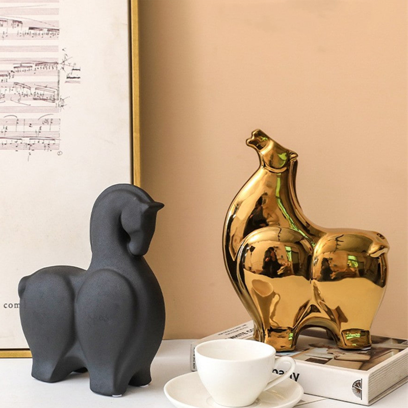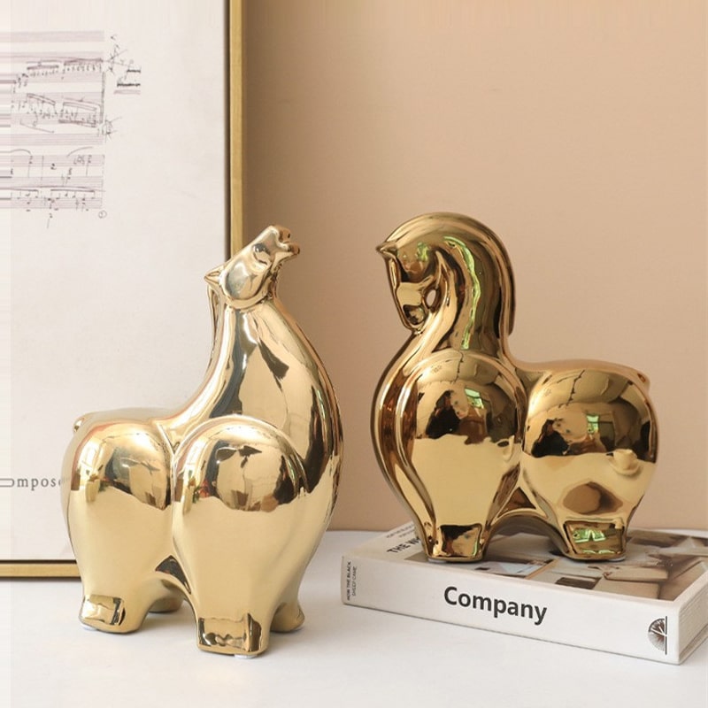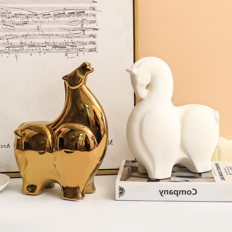Tượng Ngựa Gốm Sứ Mạ Vàng