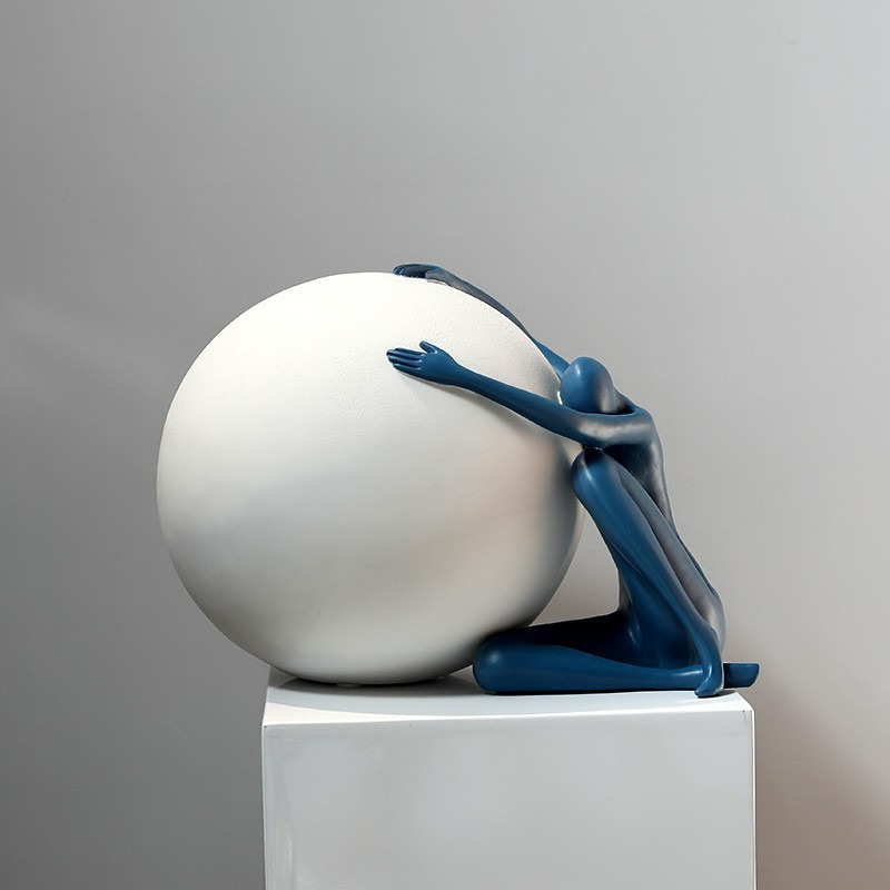 Thiết kế tượng ôm bóng không chỉ tạo điểm nhấn thú vị cho phòng khách mà còn mang đến một thông điệp mạnh mẽ về sự kết nối và tình yêu. Với hình ảnh người ôm bóng, tượng thể hiện sự gắn kết, tình yêu vô điều kiện, rất phù hợp với những gia đình mong muốn mang lại năng lượng tích cực và hạnh phúc trong không gian sống.