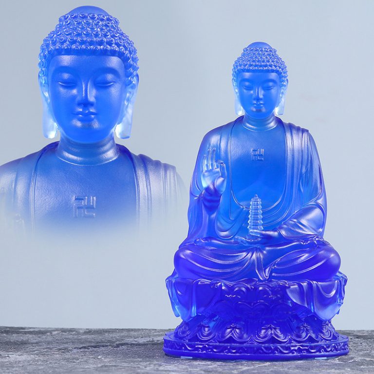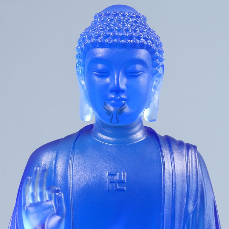 - Chất liệu lưu ly: Tượng có độ bền lâu dài, dễ dàng vệ sinh và bảo dưỡng, đồng thời mang lại vẻ đẹp trong suốt và sáng bóng.