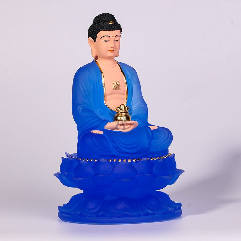 Tượng Phật A Di Đà được chế tác từ chất liệu lưu ly cao cấp, mang lại vẻ đẹp sang trọng và bền bỉ. Chất liệu này giúp tượng có độ sáng bóng, dễ dàng vệ sinh và bảo quản, đồng thời mang lại giá trị phong thủy lâu dài.