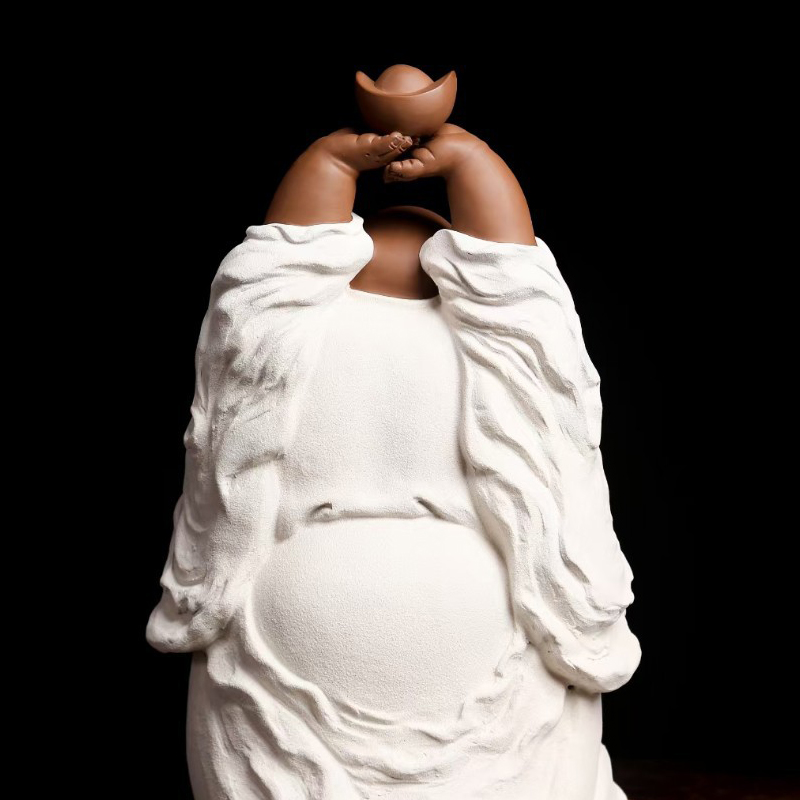 - Thiết kế tinh xảo: Mỗi chi tiết được chăm chút cẩn thận, từ khuôn mặt tươi tắn của Phật Di Lặc cho đến các chi tiết như túi tiền và các biểu tượng thịnh vượng khác.