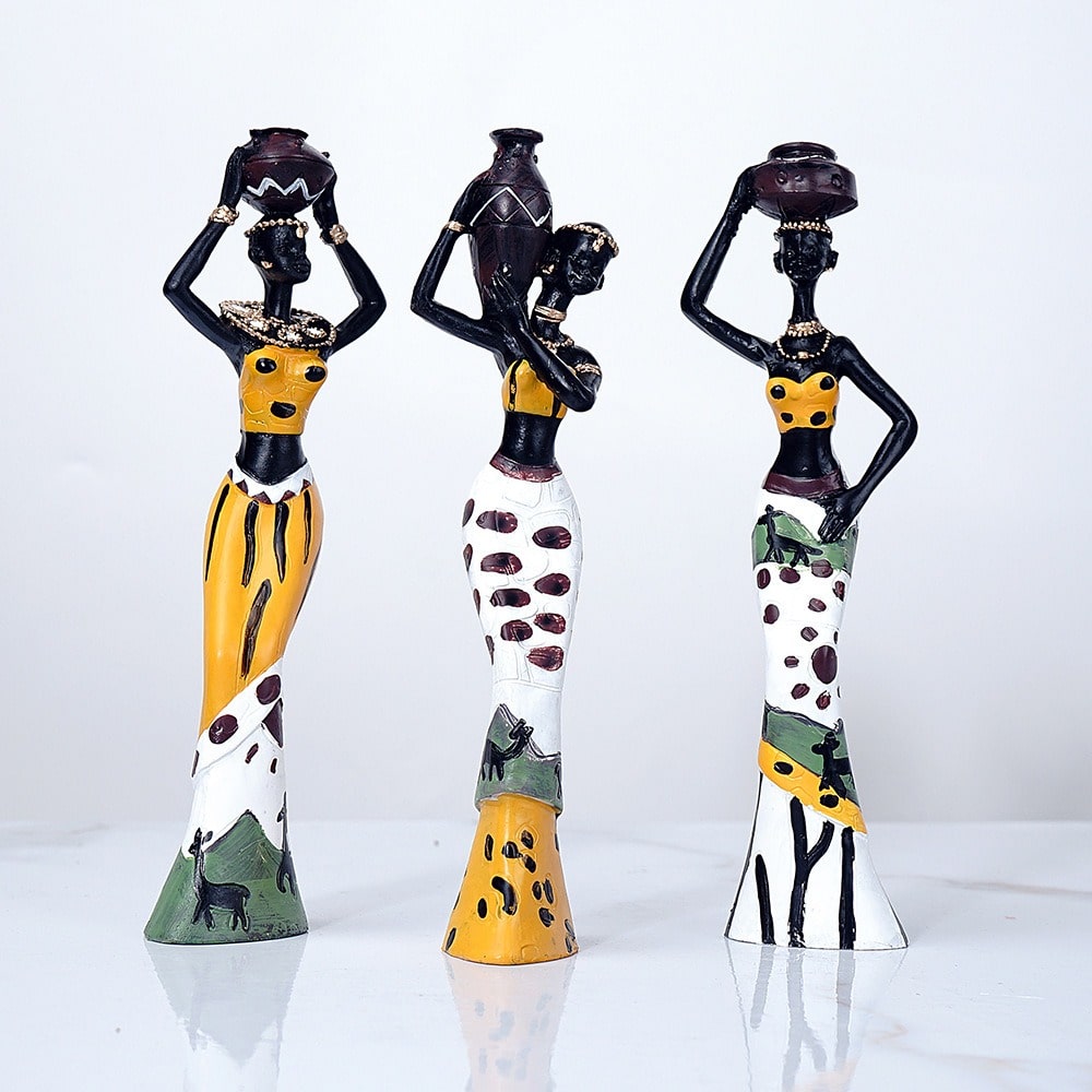 Bộ tượng phụ nữ Châu Phi trang trí kệ tủ