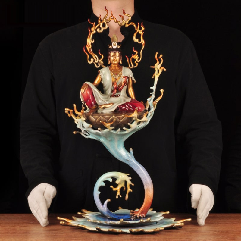 Kích thước: D36cm x R33cm x C58cm Chất liệu: đồng Trọng lượng: 11kg