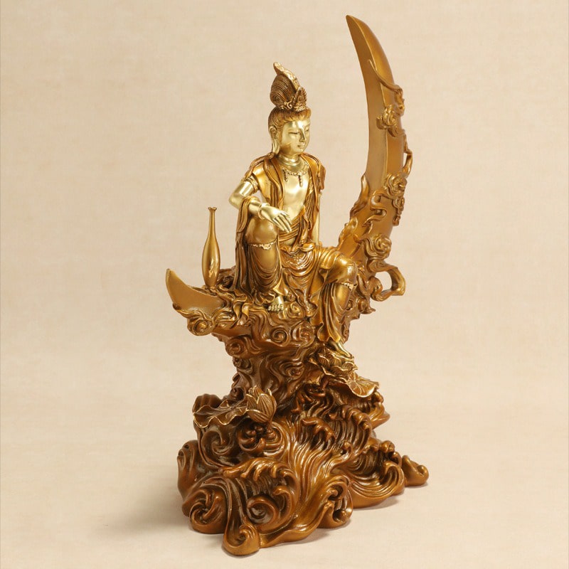 Tượng Quan Âm Bồ Tát Trên Cung Trăng Bằng Đồng – Biểu Tượng Của Lòng Từ Bi Và Bình An Tại Decor Hà Nội
