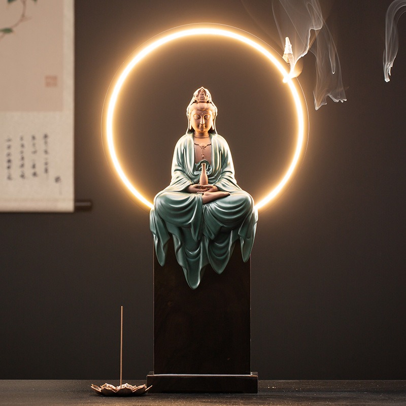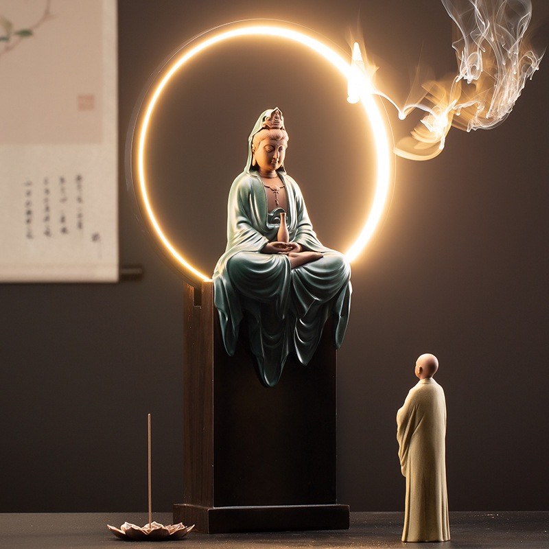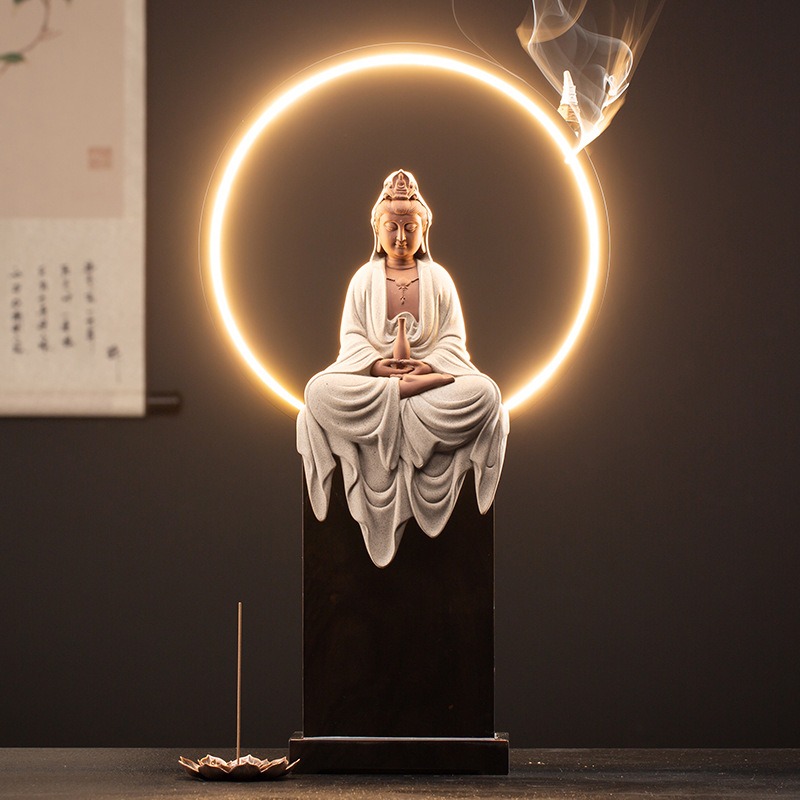 Ngoài việc sử dụng Tượng Quan Âm để bàn, bạn cũng có thể kết hợp với thác khói trầm hương phong thủy để gia tăng tác dụng phong thủy trong không gian sống. Sản phẩm thác khói trầm hương phong thủy không chỉ tạo ra không gian thư giãn với hương trầm dễ chịu mà còn giúp thanh lọc không khí, xua đuổi tà khí và thu hút năng lượng tích cực.