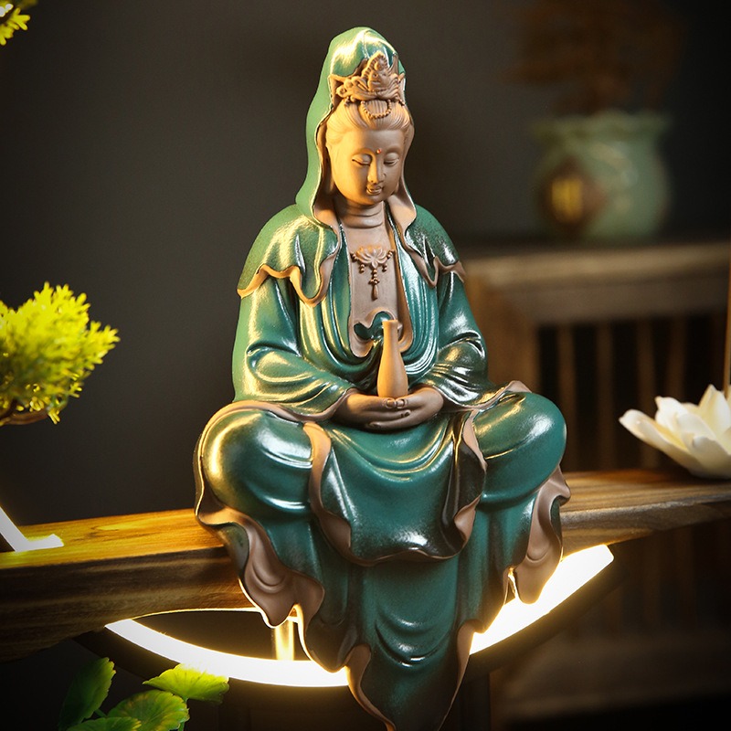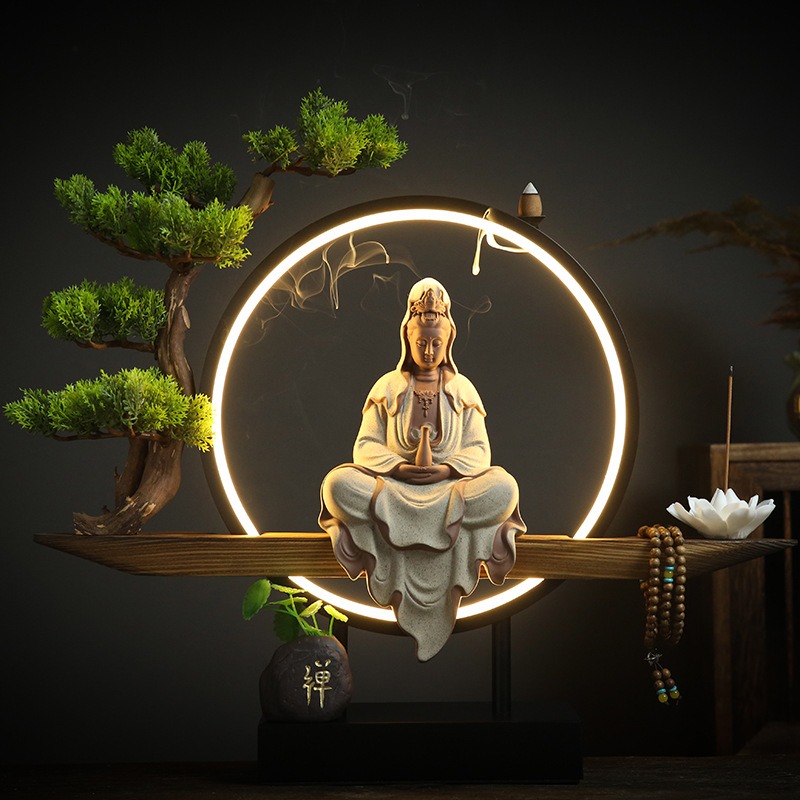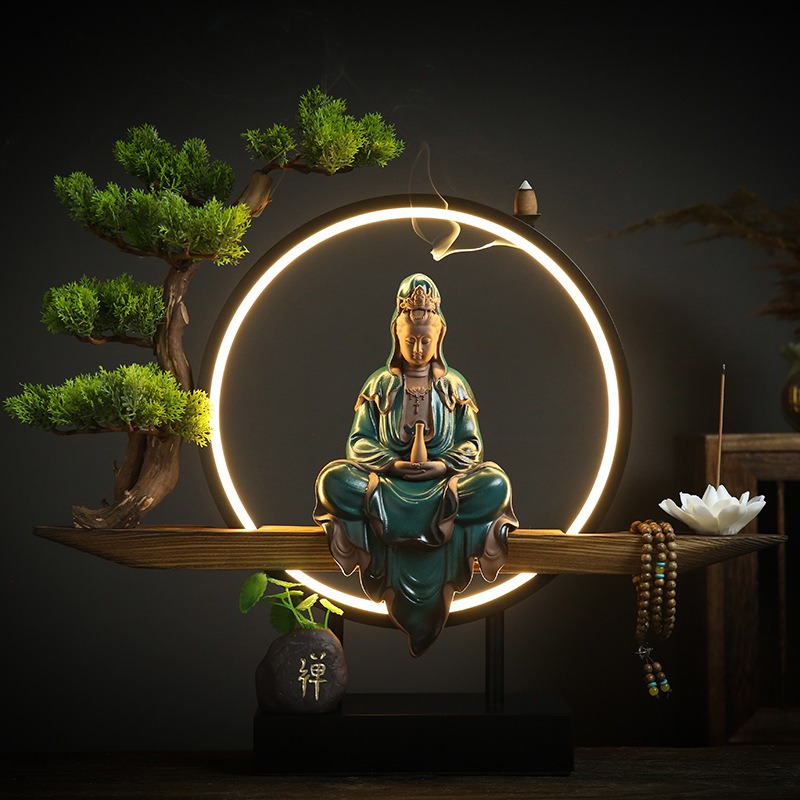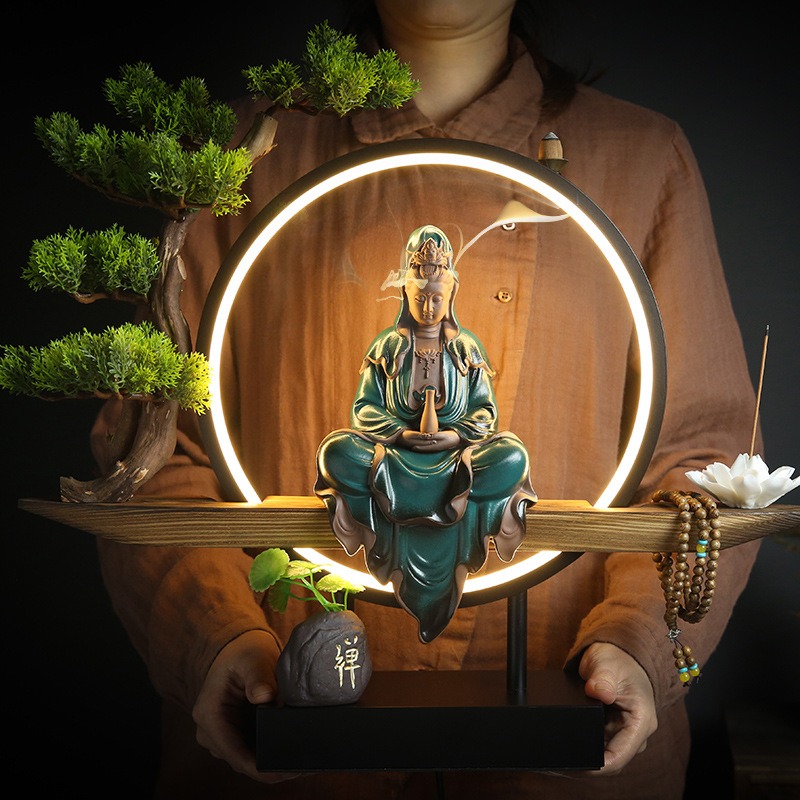 Tượng Quan Âm kết hợp trầm hương từ Decor Hà Nội là một sản phẩm phong thủy lý tưởng giúp gia chủ thu hút tài lộc, tạo không gian thư giãn và mang lại sự bình an cho gia đình. Với thiết kế tinh xảo, chất liệu cao cấp và ý nghĩa phong thủy sâu sắc, sản phẩm này chắc chắn sẽ là điểm nhấn lý tưởng trong không gian sống của bạn. Hãy để thác khói trầm hương phong thủy mang lại sự bình an và tài lộc cho gia đình bạn, tạo nên không gian sống thư giãn và đầy năng lượng tích cực.