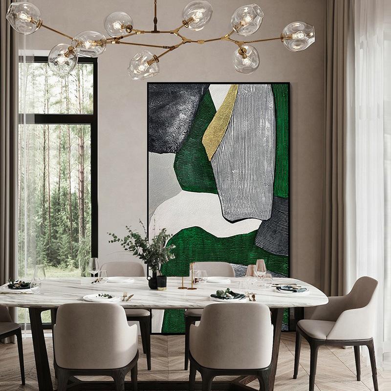 Một bức tranh đẹp sẽ càng trở nên hoàn hảo khi kết hợp với các món đồ trang trí khác. Tranh sơn dầu cao cấp trang trí độc đáo có thể dễ dàng kết hợp với các món đồ nội thất như ghế sofa, bàn trà, kệ sách, hoặc các món đồ decor treo tường khác. Việc kết hợp các món đồ trang trí sẽ giúp tạo ra một không gian đồng bộ và sang trọng, thể hiện phong cách riêng của gia chủ.